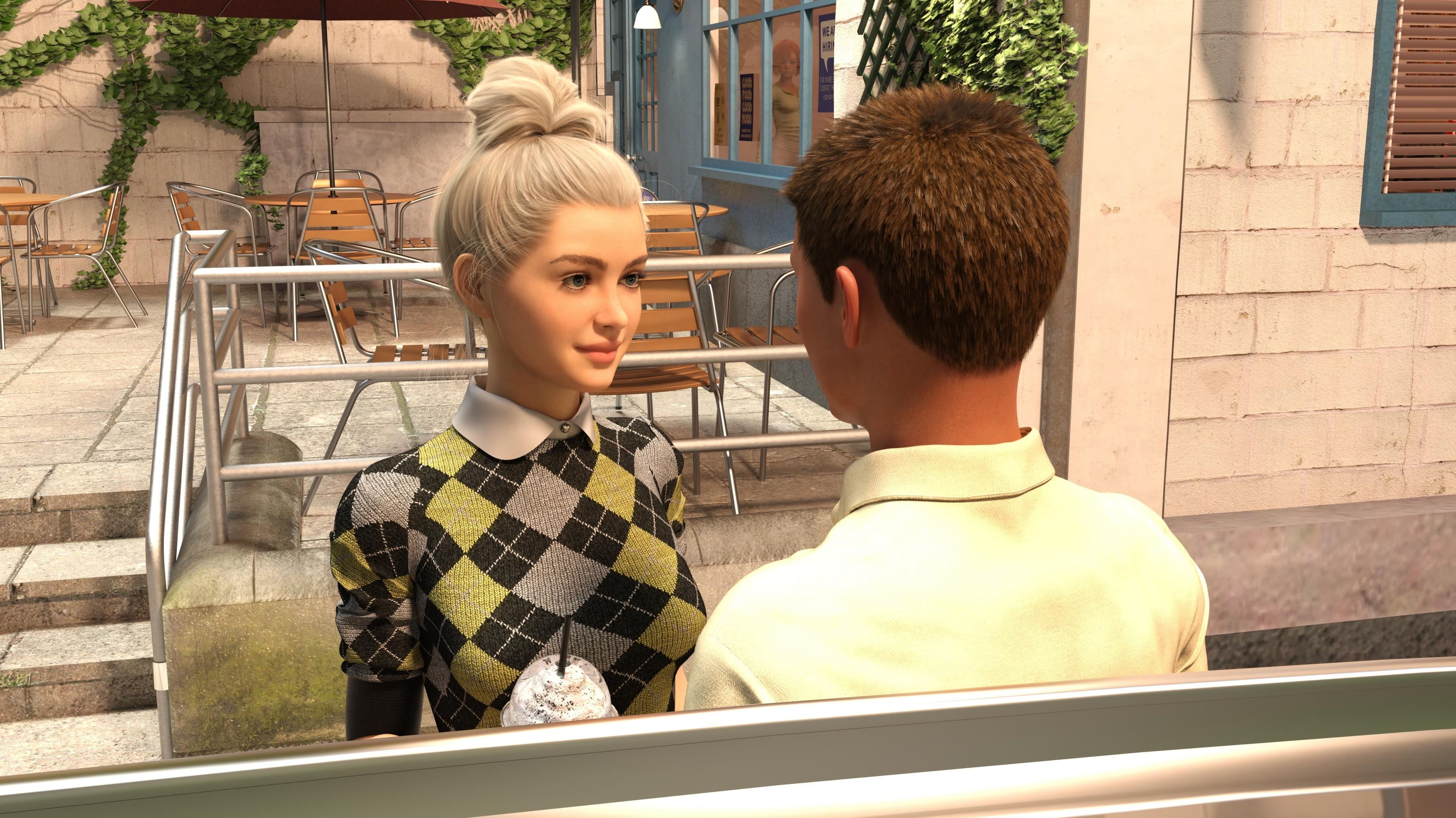 In Mythic Desires you play the role of Eric, a young man in his mid-twenties who owns a small coffee shop and suddenly finds himself being the centre of attention for a bunch of new girls in his life. His view of the world starts to change as he learns that the world he knows isn’t the only one out there.